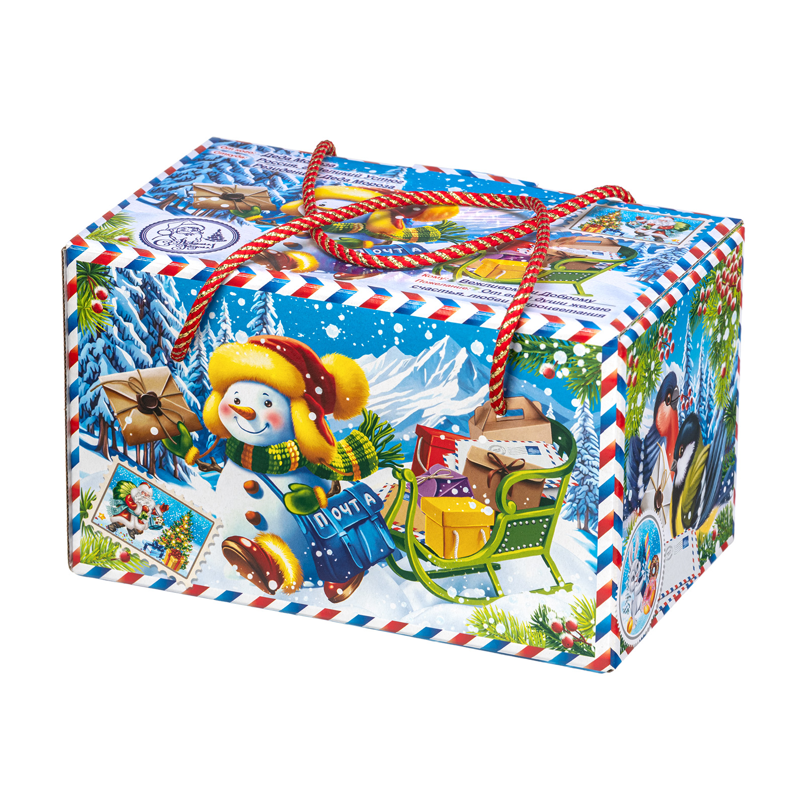 Интересный вариант новогоднего подарка – « Почтальон Снежкин». Он представлен в разделе Картон. Отлично подойдет на подарок в 2026 году с символом Лошадь. Внутри такого презента находится кондитерский набор весом 1000 граммов.